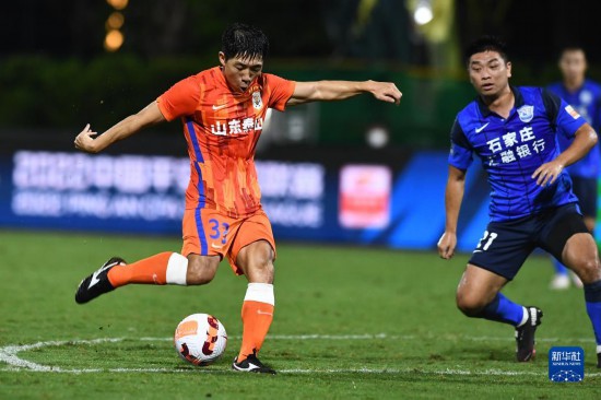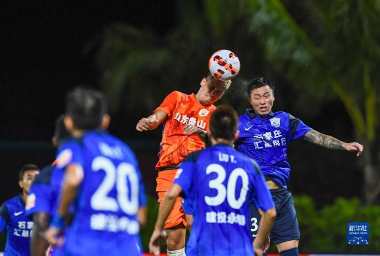 2022赛季中超联赛第16轮比赛山东泰山2比0胜沧州雄狮 当日,在海南海口举行的2022赛季中国足球协会超级联赛第16轮比赛中,山东泰山队以2比0战胜沧州雄狮队。 8月12日,山东泰山队球员克雷桑·巴塞洛斯(上左)在比赛中争顶。新华社记者 胡智轩 摄 Tags: