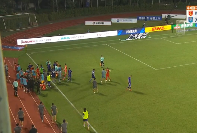 贝里奇的护球的时候,先是被任威给放倒,旁边的潘喜明看着不过瘾,又跑上来碰瓷了一下,还从贝里奇的身上跨过去,这直接惹恼了后者,躺在地上的时候就开始反击,然后双方的球员、替补席、工作人员、裁判组等所有人迅速聚拢,大规模冲突就此诞生。