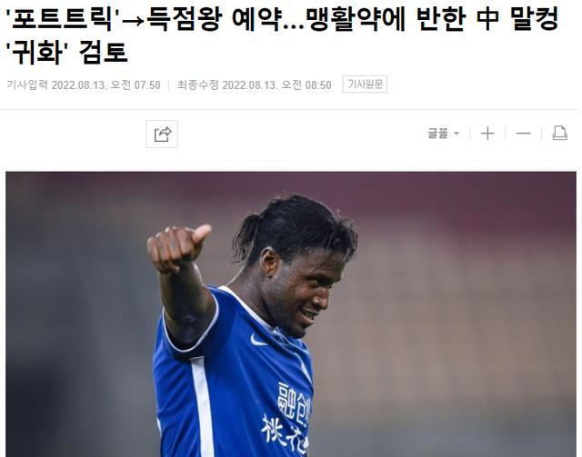 韩国足球记者姜东勋说道:“马尔康是本届联赛的头号得分手,而中国方面也在积极争取他的加盟!”