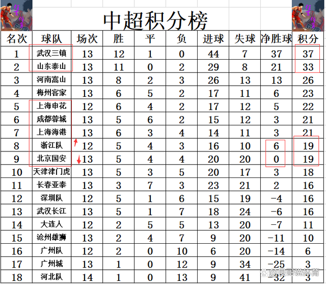 积分榜方面,武汉三镇以4分优势领跑,目前来看唯一能阻止武汉三镇成为第二个恒大的恐怕就只有卫冕冠军山东泰山了。上港3轮不败,进球少成都蓉城1个,他们也就无力回到前5,还是排在第7。浙江队虽然无法继续连胜,但是拿到1分后,他们以净胜球优势超过北京国安升回前8。