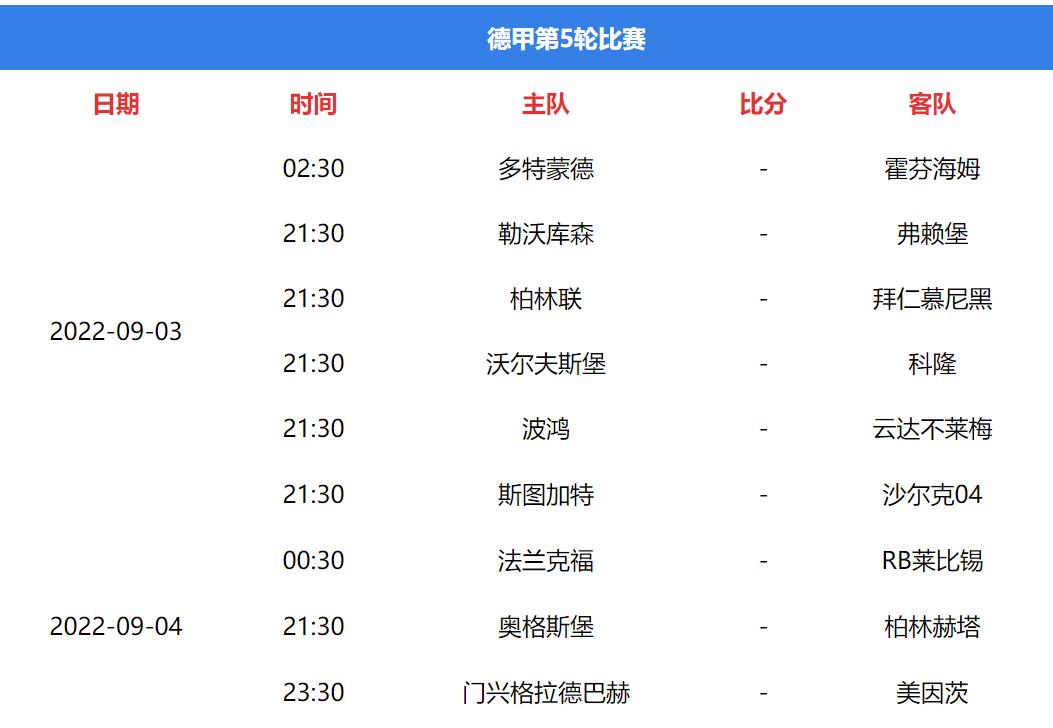 德甲联赛2022-2023赛季第五轮比赛赛程时间表 2022-23赛季德甲联赛经过前四轮的对决,各大战队排名目前已经逐渐开朗起来,在第上轮比赛中大家影响最多的应该是索默单场飞身扑球的场景吧,接下来第五轮是如何对阵的呢? 2022-23赛季德甲第五轮比赛赛程表 Tags: