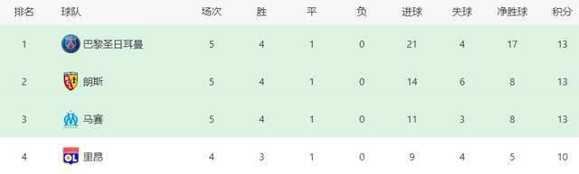 现在5轮过后,大巴黎取得4胜1平积13分,继续排名第一,身后的对手步步紧逼,包括朗斯和马赛,战绩同样是4胜1平积13分。比起朗斯,马赛的实力更强,有一定希望跟大巴黎竞争本赛季法甲冠军。