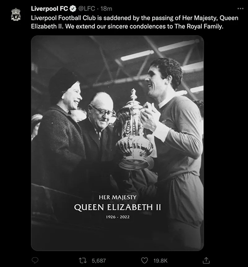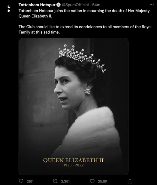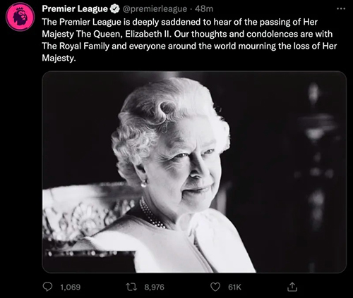 英超官方及各球队发文悼念英国女王