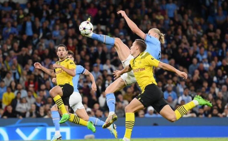 新赛季欧冠小组赛年轻小伙哈兰德飞身破门相当震撼