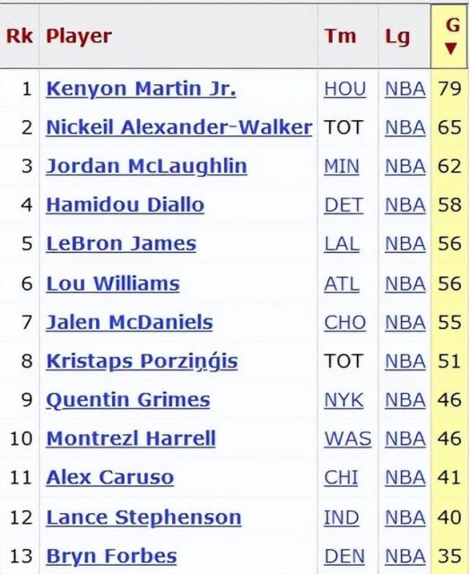 上赛季NBA有25人穿6号球衣。