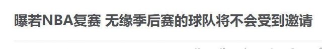 近日,有多个消息称NBA复赛的可能性越来越大了。昨天,报道称NBA已经在和奥兰多的迪士尼讨论复赛计划,并且预计会在8月下旬复赛。但,为了防范风险,联盟可能不会邀请所有球队参赛,那些无缘季后赛的队伍可能被排除在复赛方案上。NBA记者史蒂夫-波佩认为,为了将复赛的风险最小化,没有意义邀请全部30支球队复赛。之后,NBA记者Jeff Zillgitt转发了这条推特,并补充道:“虽然NBA一直表示他们会考虑多种方案,但是据我所听到的消息:如果NBA复赛并打一些常规赛的话,那些无缘季后赛的球队将不会受到邀请。”