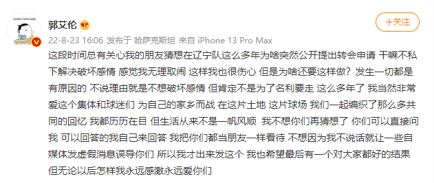 郭艾伦怒怼谣言,正面回应转会