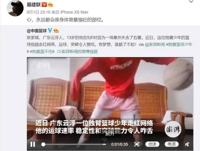 易建联转发了他的视频,