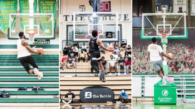 摄影师为他们拍下照片,詹姆斯今天晒出三张,他与两个儿子的扣篮照,竟然非常相似。