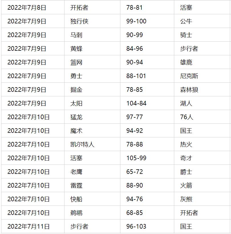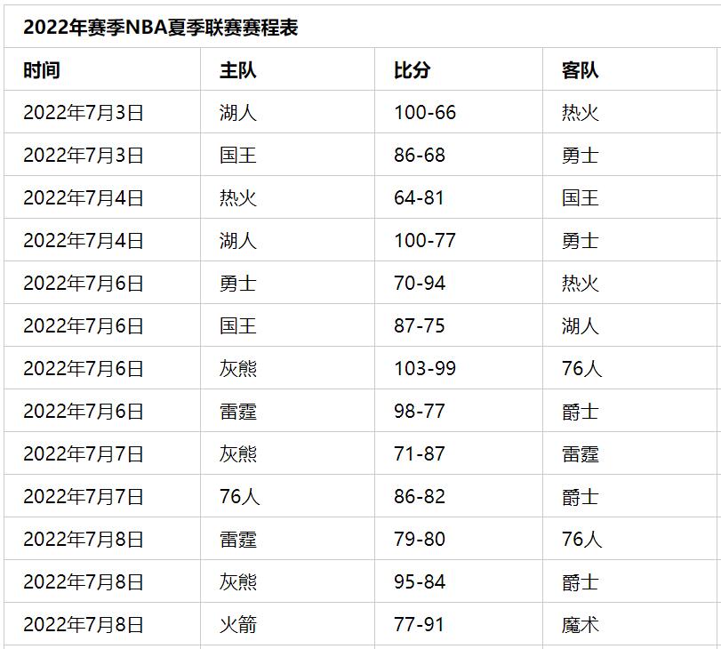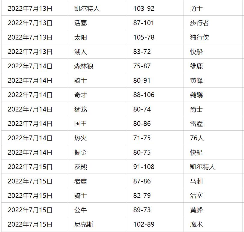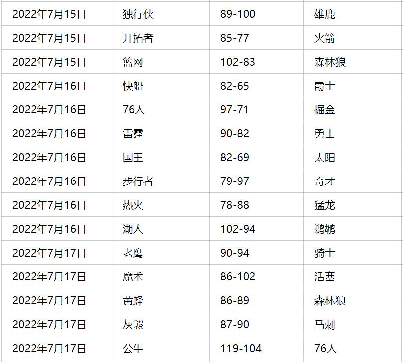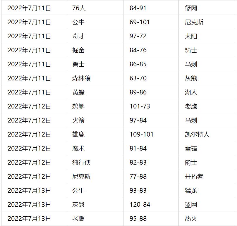 NBA夏季联赛有哪些比赛2022年