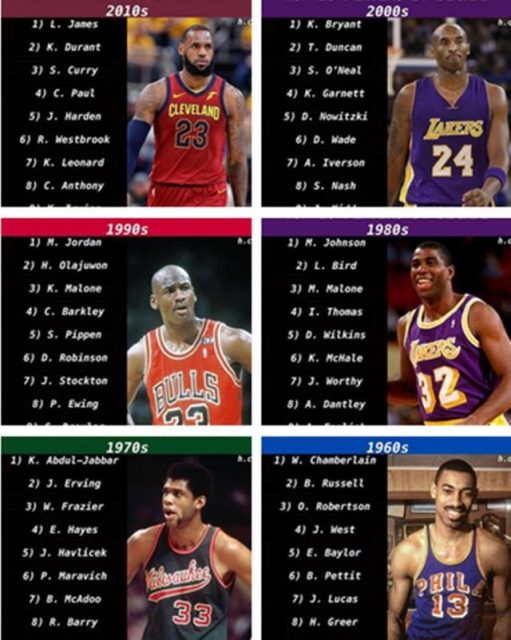 NBA中,天才如云,十年一次,那么,联盟中的佼佼者又是什么?美媒体曾经对这个时代最优秀的运动员进行过投票,现在让我们来看一看你喜欢的运动员有没有上榜。