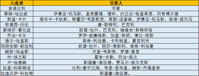 其中吉诺比利的引荐人为邓肯,本届名人堂引荐人如下: