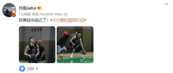 9月14日讯 今日,辽宁男篮球员付豪更新了个人微博。