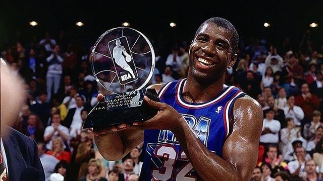 魔术师约翰逊绝对是NBA里程碑式的巨星,在上世纪八十年代,正是他和“大鸟”伯德的帮助下,NBA的收视率持续走高,发展壮大成了如今这般模样。而魔术师本身的传奇性也相当强烈,