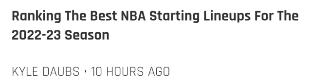 垫底的是马刺的预计首发,他们是琼斯、瓦塞尔、麦克德莫特、凯尔登-约翰逊和珀尔特尔,这套首发没有什么成就,也被认为是30队实力最差的首发。马刺看似已经下定决心摆烂,他们的目标是2023年状元热门文班亚马。