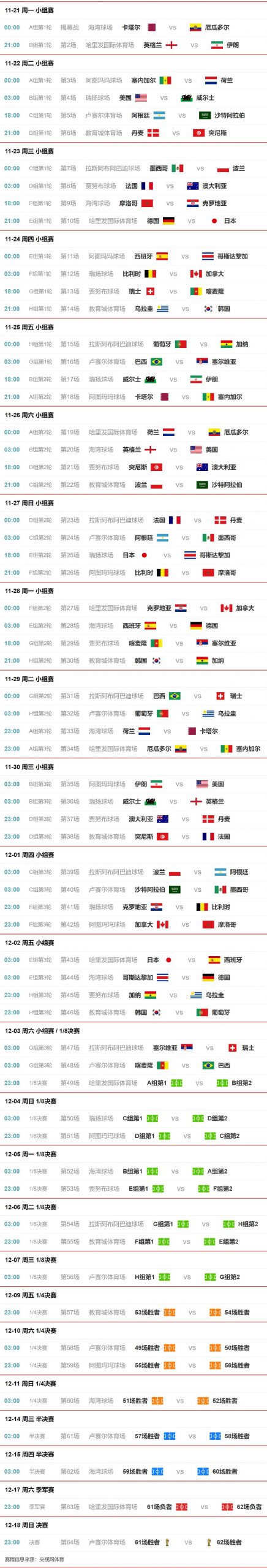 下面我们就来看下最新出炉的2022卡塔尔世界杯赛程表吧。