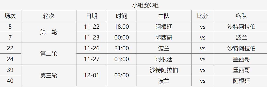 FIFA2022卡塔尔世界杯,每四年举办一次的重大国际足球赛事,将于今年11月21日至12月18日举行。目前,参加比赛的32强已经准备就绪,分到C组的球队有阿根廷、沙特阿拉伯、墨西哥和波兰,那么,这四支球队如何对战才能晋级?