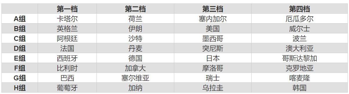 2022卡塔尔世界杯32强分组和分档(一图秒懂)