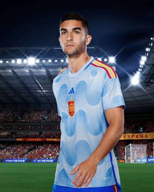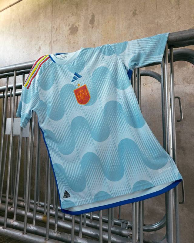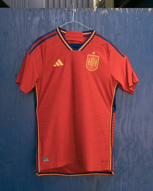 西班牙国家队2022世界杯主客场球衣正式发布,是阿迪达斯品牌设计的。