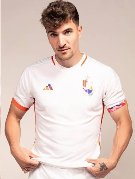 2022年卡塔尔世界杯比利时队客场球衣这款球衣是白色的,带有多色细节,包括阿迪达斯和队徽,上面有图案。是阿迪达斯品牌设计的。