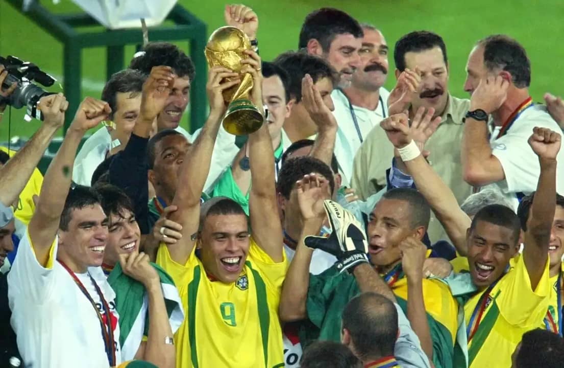 罗纳尔多、罗纳尔迪尼奥、卡洛斯、卡福与里瓦尔多成为巴西核心球员。巴西是少数没有表现失准的传统强队,先在八分之一决赛以2-0淘汰贝利时,八强赛以2-1淘汰英格兰,半决赛1-0击败土耳其晋级决赛,决赛巴西以2-0击败德国,这时巴西已创下五夺世界杯纪录,乃史无前例。罗纳尔多在该届世界杯中入了8球,成为2002年世界杯金靴奖得主。