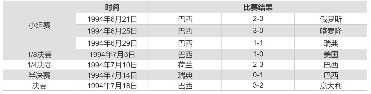 1994世界杯巴西队战绩