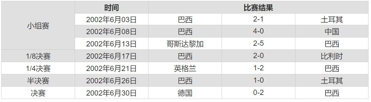 2002世界杯巴西队战绩