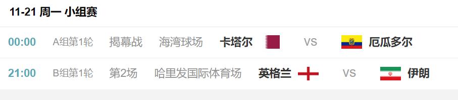由于卡塔尔世界杯提前一天,所以揭幕战当天,只安排了两场比赛。