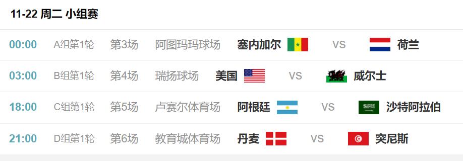 FiFA2022卡塔尔世界杯11月22日有几场比赛