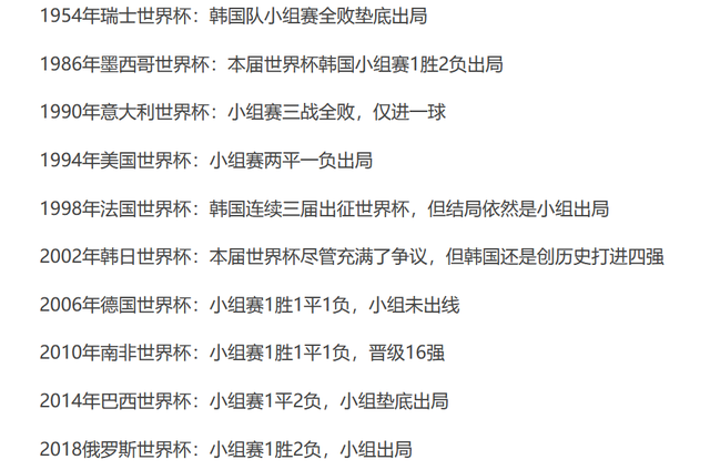 韩国国家队历届世界杯战绩