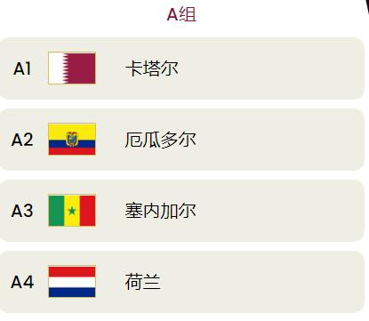 本届世界杯,卡塔尔作为东道主分在A组。自动归到第一档球队。本组对手有(第二档球队)无冕之王-荷兰队,(第三档球队)特兰加雄狮-塞内加尔,(第四档球队)高原猎豹-厄瓜多尔。