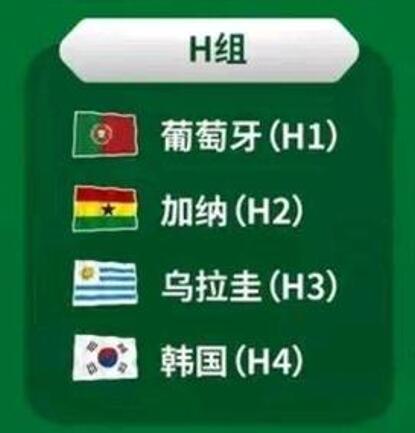 H组:葡萄牙、加纳、乌拉圭、韩国