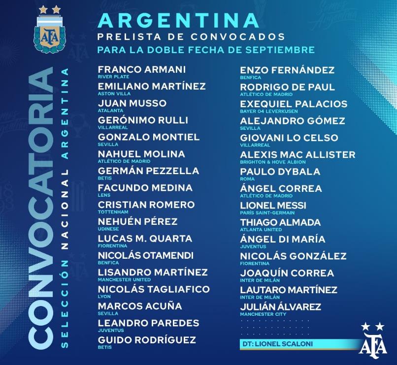 2022世界杯参赛队阿根廷公布了新一期球员名单