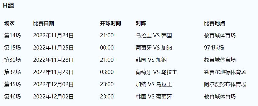 H组的四支球队分别是葡萄牙、乌拉圭、韩国、加纳。