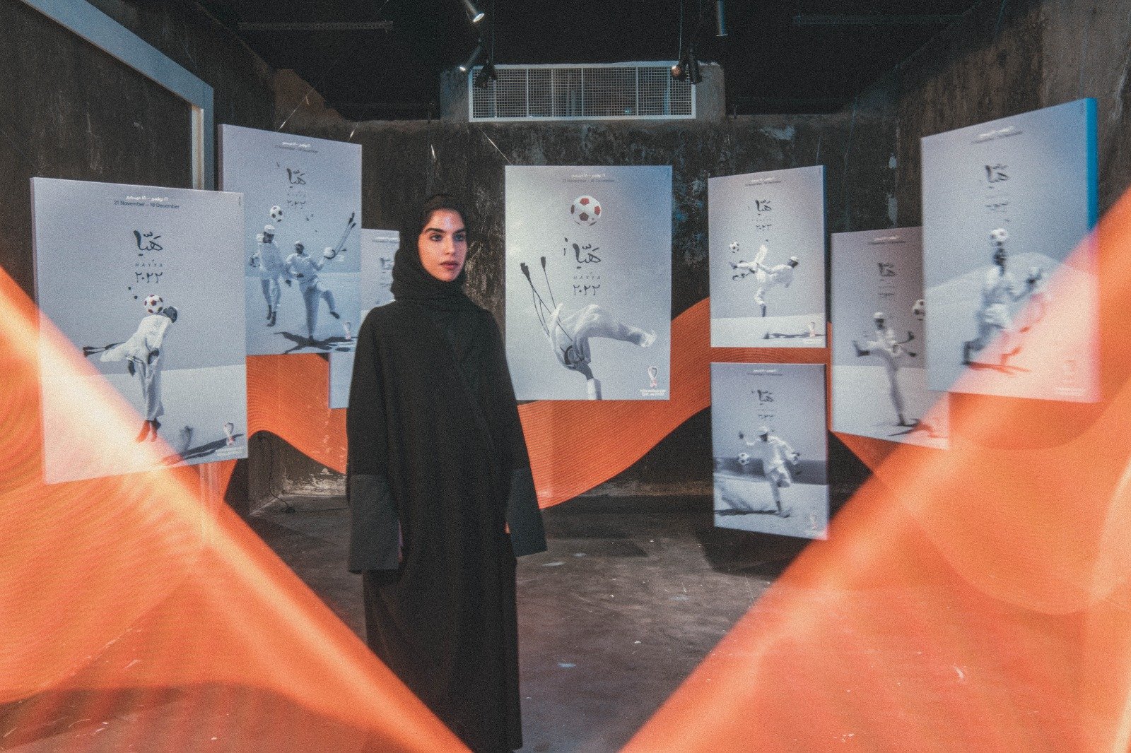 “我希望每张海报都能展现卡塔尔的庆祝活动和球迷热情。主海报描绘了 “gutra”和“egal”(传统头饰)以庆祝的方式在空中挥舞的画面,这是当地球迷们在进球时的标志性庆祝动作。”